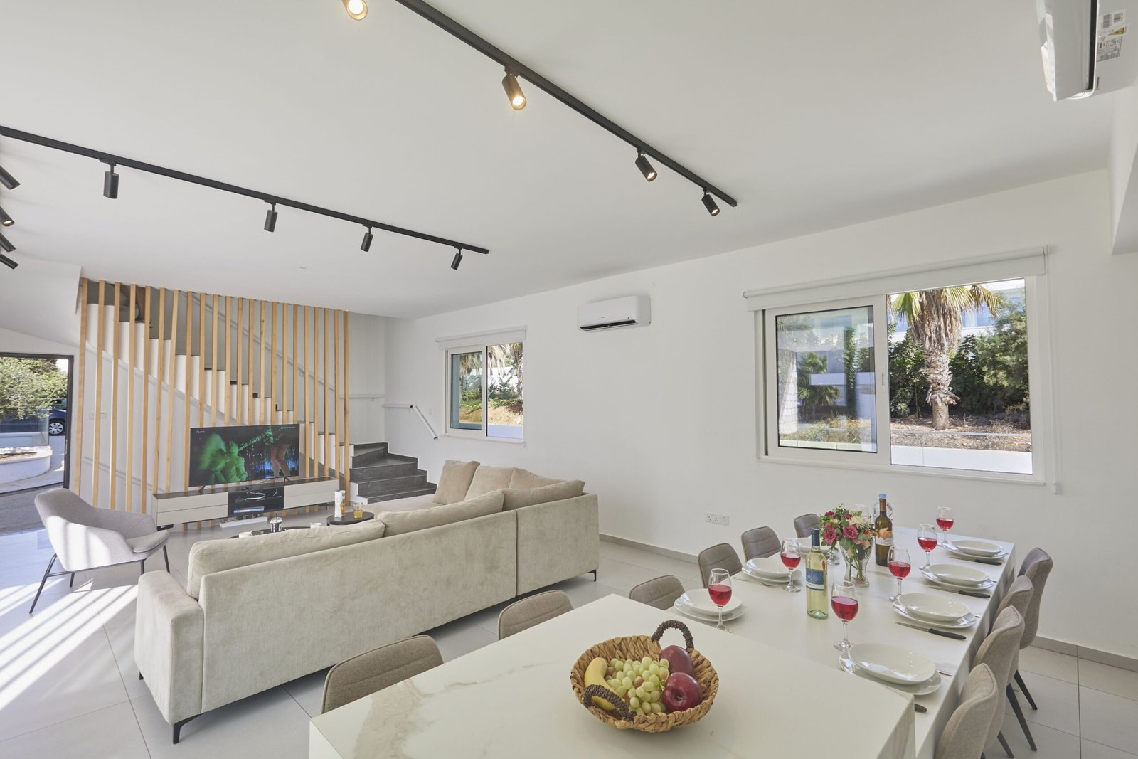 This luxury and brand new 5 bedroom, 3 storey villa is located in a prime, central Ayia Napa location, just a few minutes walk to Nissi Avenue and all its beaches and amenities. The villa is newly built and fully equipped with new and contemporary furniture and fittings to ensure a comfortable stay.