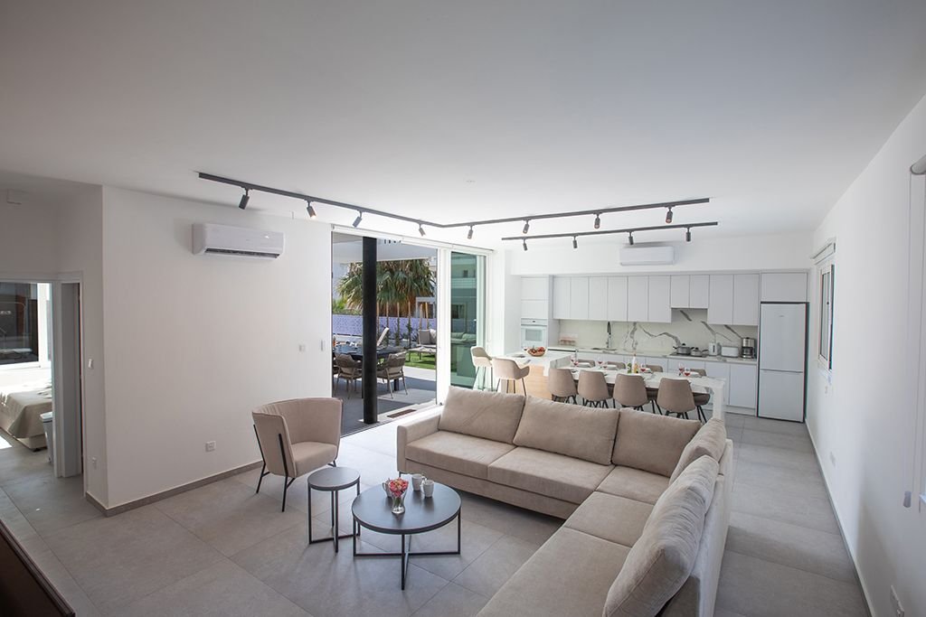 This luxury and brand new 5 bedroom, 3 storey villa is located in a prime, central Ayia Napa location, just a few minutes walk to Nissi Avenue and all its beaches and amenities. The villa is newly built and fully equipped with new and contemporary furniture and fittings to ensure a comfortable stay.